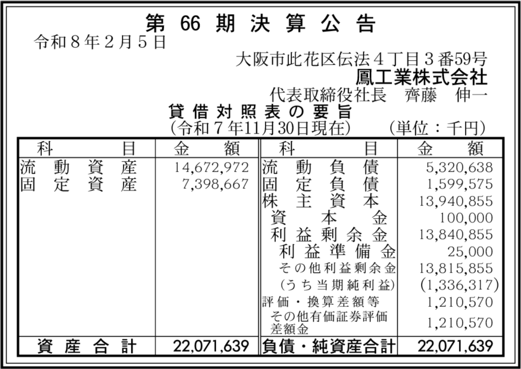 鳳エンジニアサービス株式会社 大阪市此花区 【2025年11月期】 |