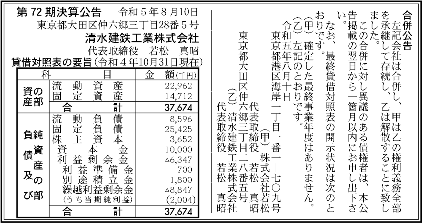 | 親会社・関連会社等 | 株式会社若松(1) |