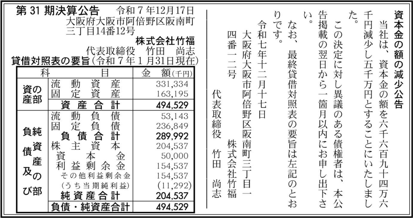 | 会社名 | 株式会社竹福 |