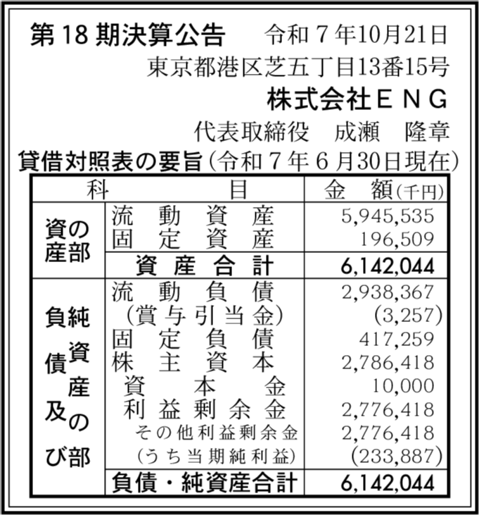 | 会社名 | 株式会社ENG |