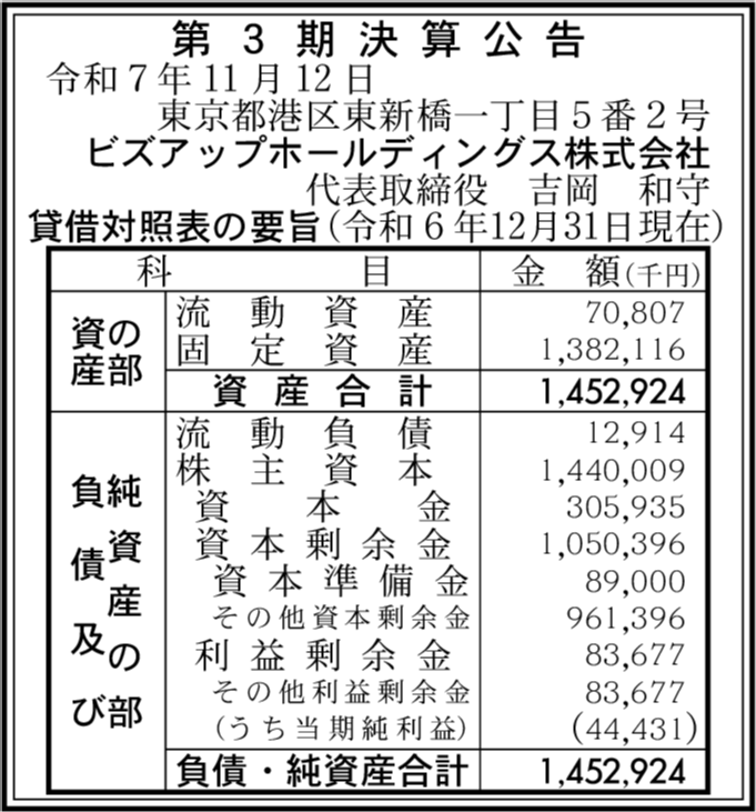 株式会社ビズアップ総研 東京都港区 【2024年12月期】 |
