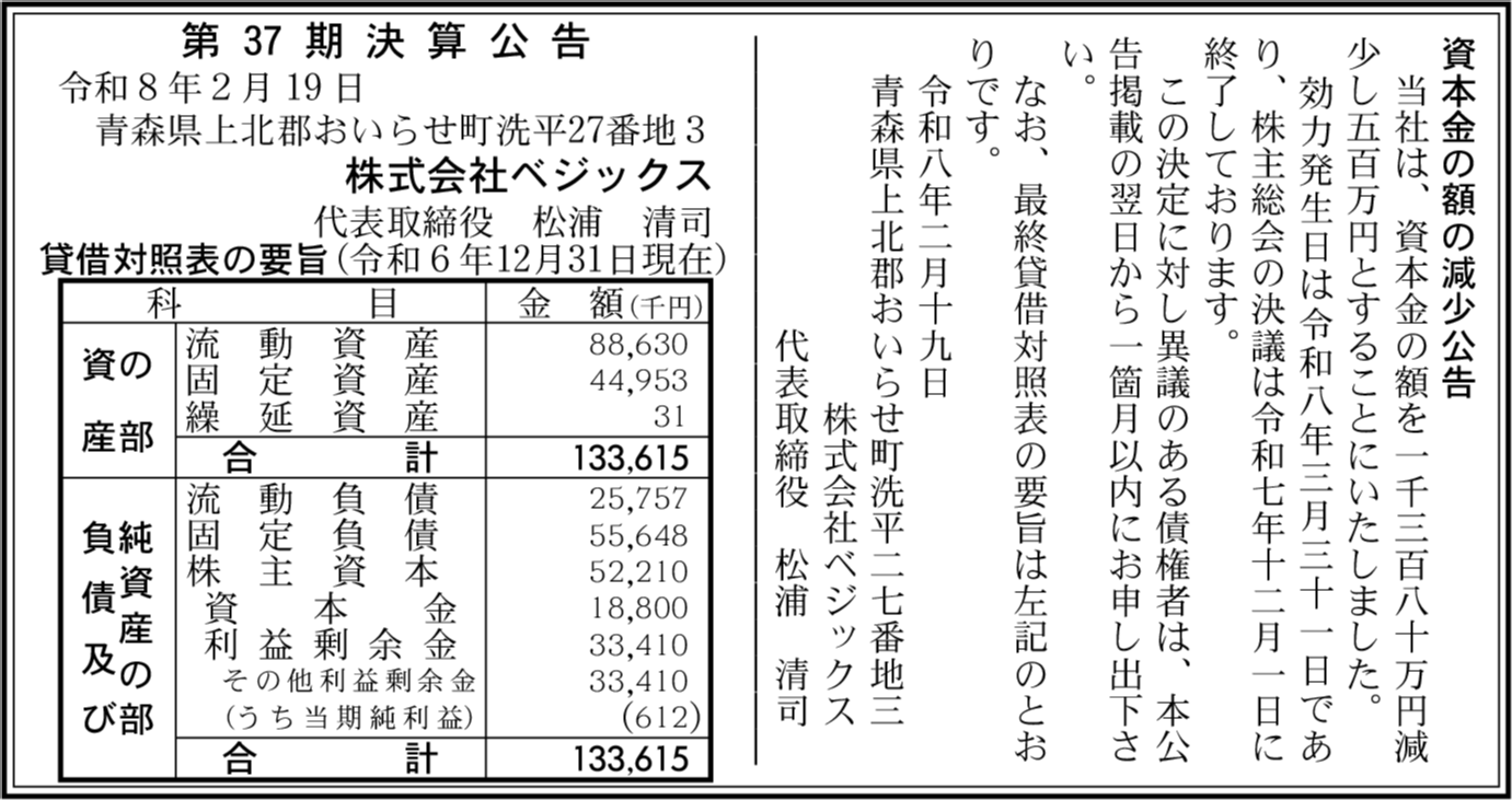 | 会社名 | 株式会社ベジックス |