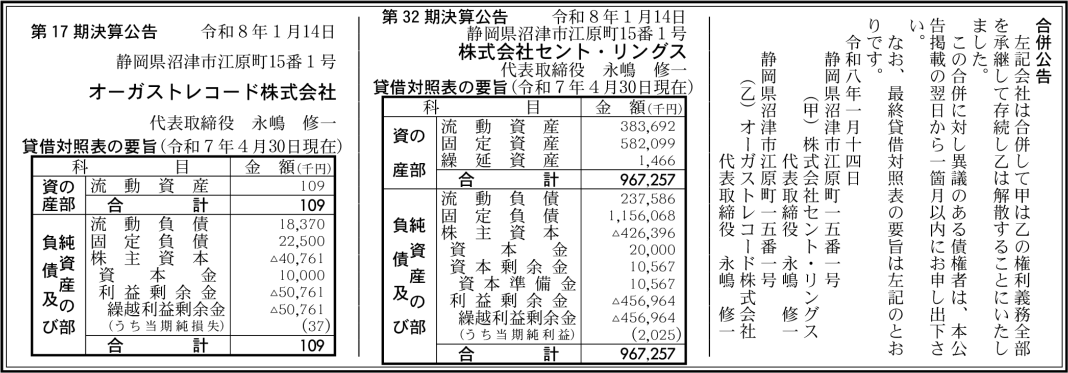 株式会社セント・リングス 静岡県沼津市 【2025年4月期】 |