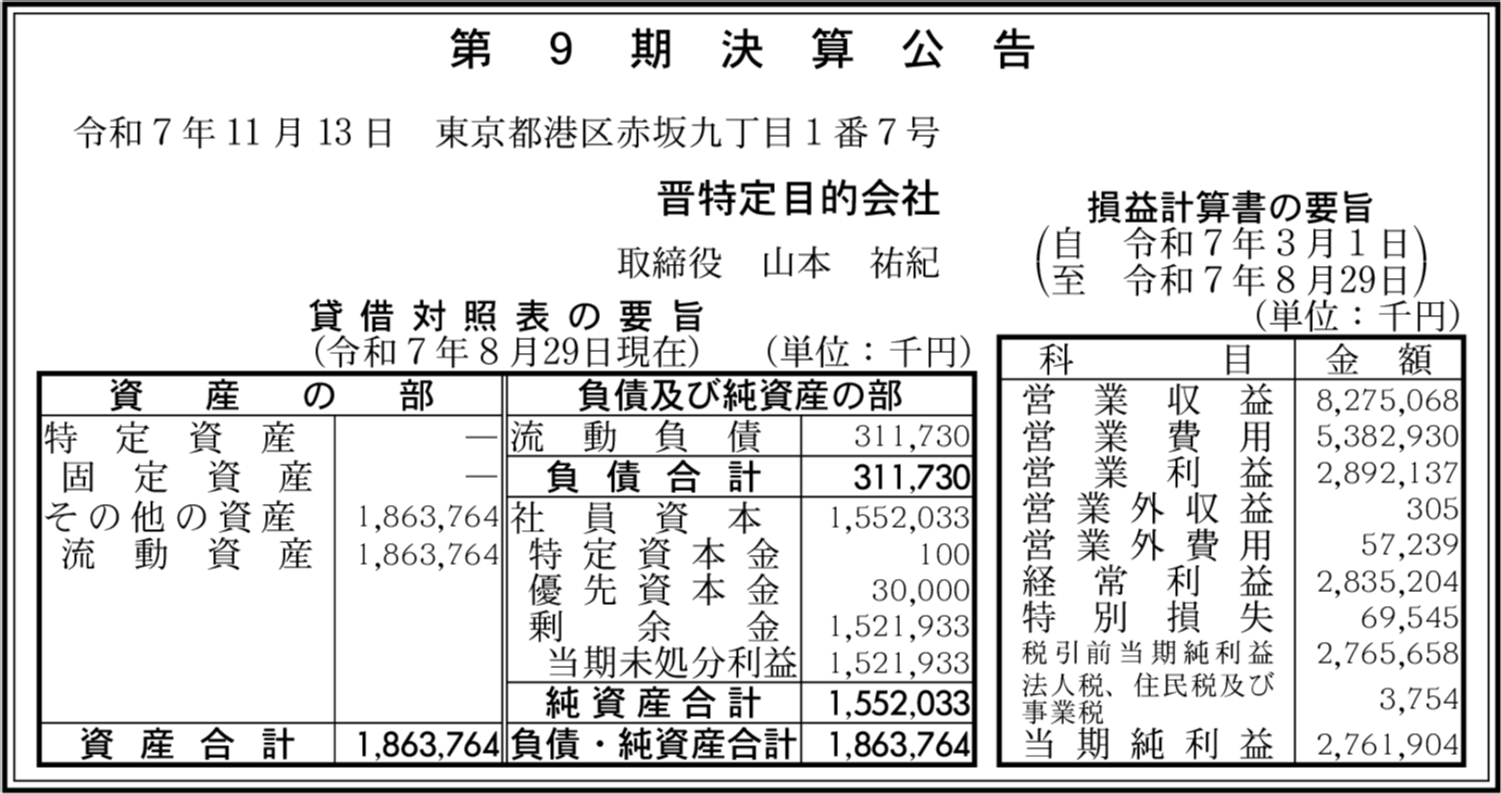 Nozomi特定目的会社 東京都港区 【2025年6月期】 |