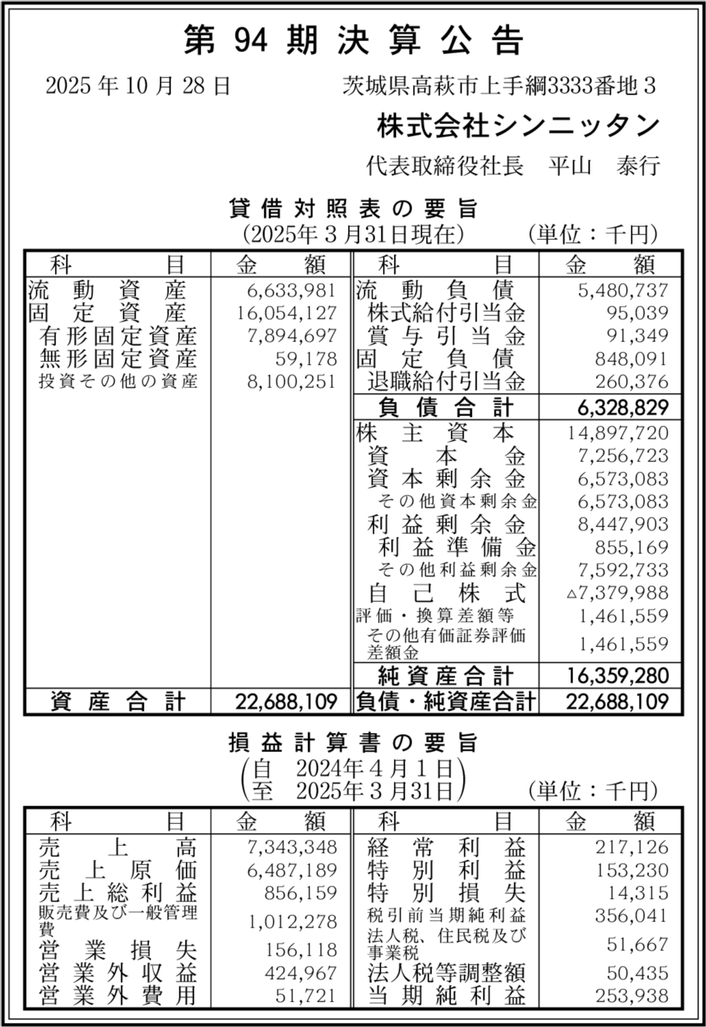 | 会社名 | 株式会社シンニッタン |