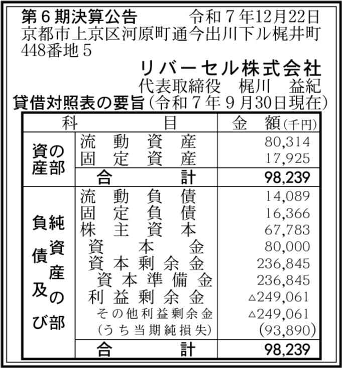 | 会社名 | リバーセル株式会社 |