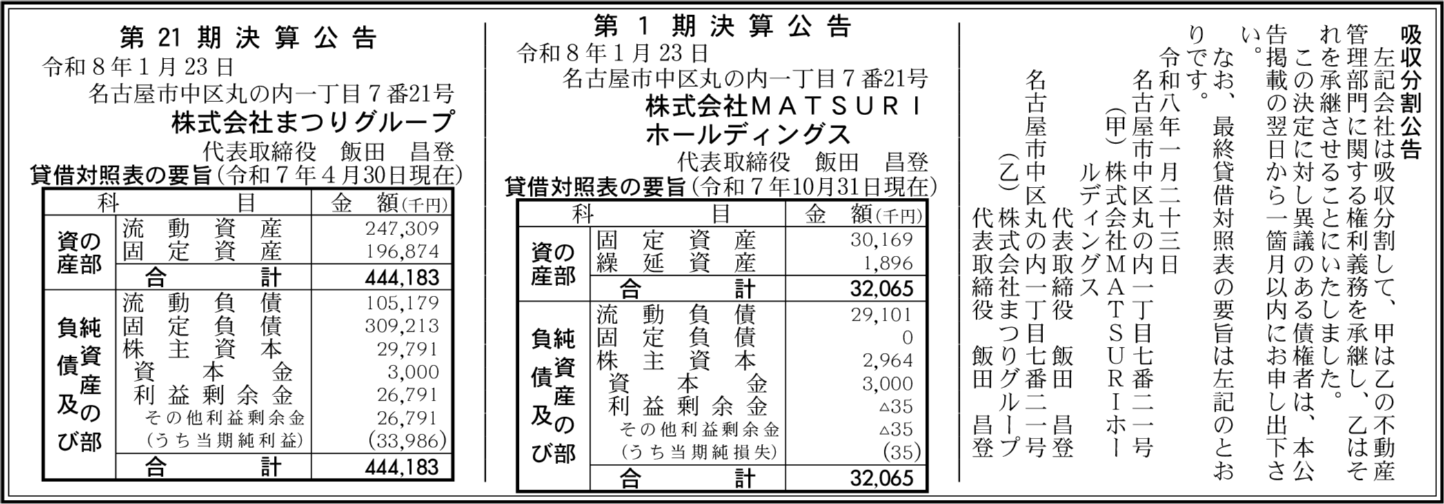 株式会社MATSURIホールディングス 名古屋市中区 【2025年10月期】 |