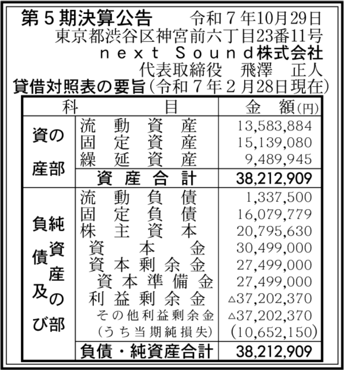 | 会社名 | next Sound株式会社 |