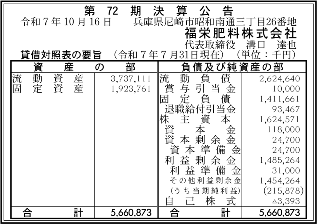 セイブサンエー肥料株式会社 兵庫県尼崎市 【2025年7月期】 |