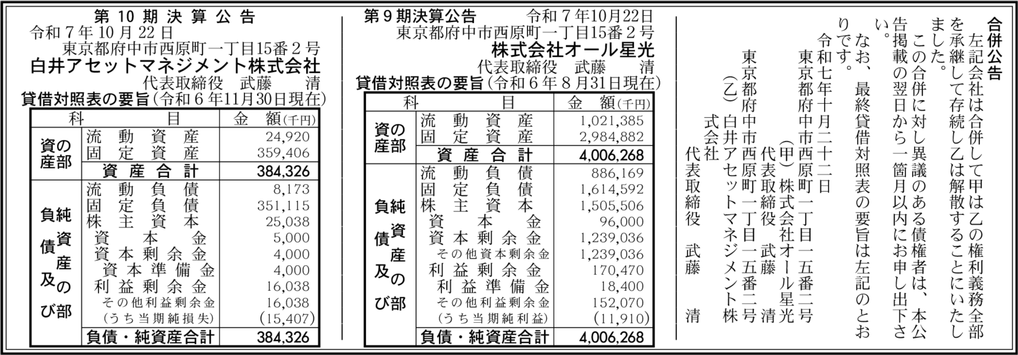 株式会社オール星光 東京都府中市 【2024年8月期】 |