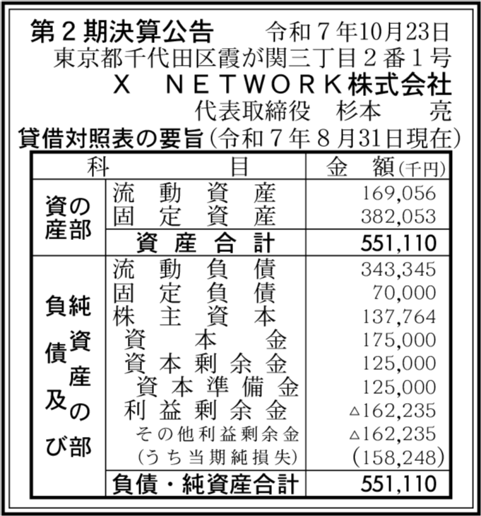 | 会社名 | X NETWORK株式会社 |