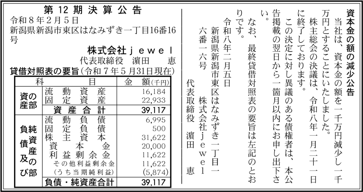新潟機械株式会社 新潟市東区 【2024年12月期】 |