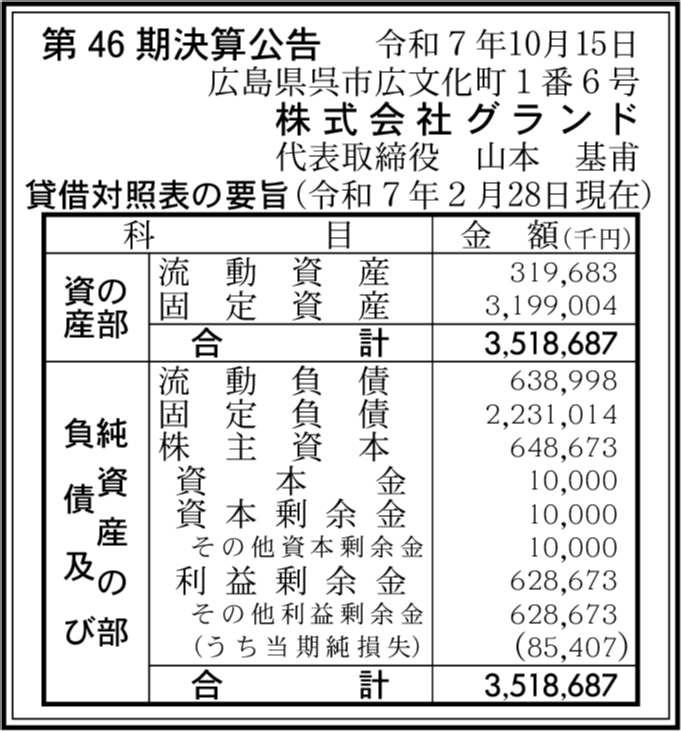株式会社七福組 広島県呉市 【2025年3月期】 |