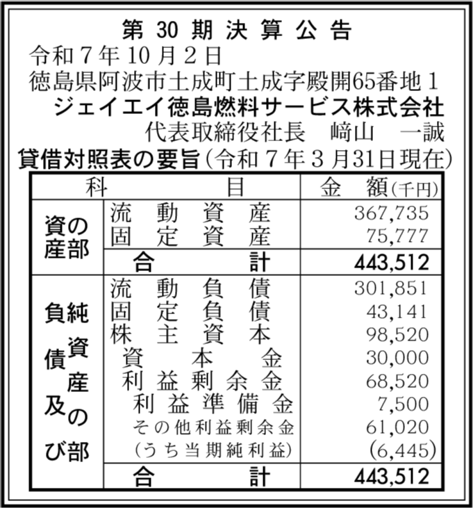 会社名 | ジェイエイ徳島燃料サービス株式会社 |