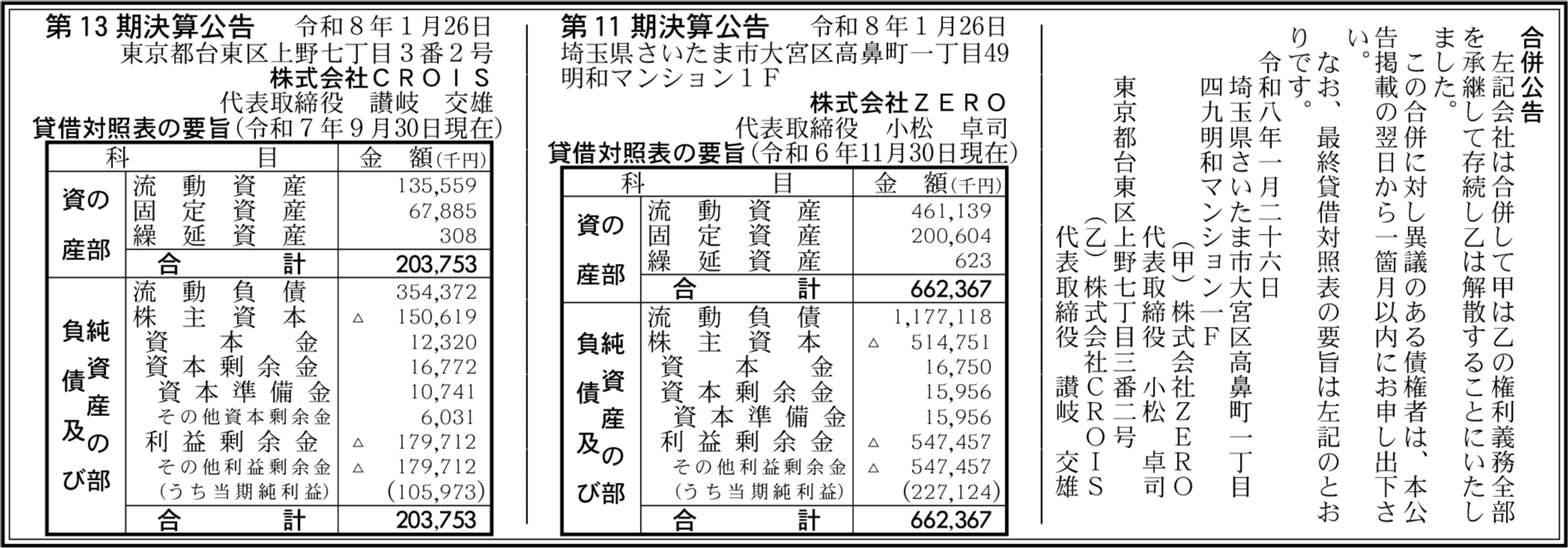 | 株式会社ウィステリア | 福岡市博多区 | ▲902万7,000円 |