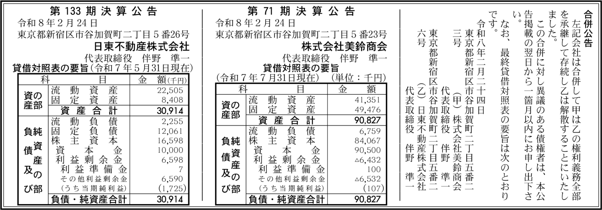 有限会社美鈴商会 東京都新宿区 【2025年7月期】 |