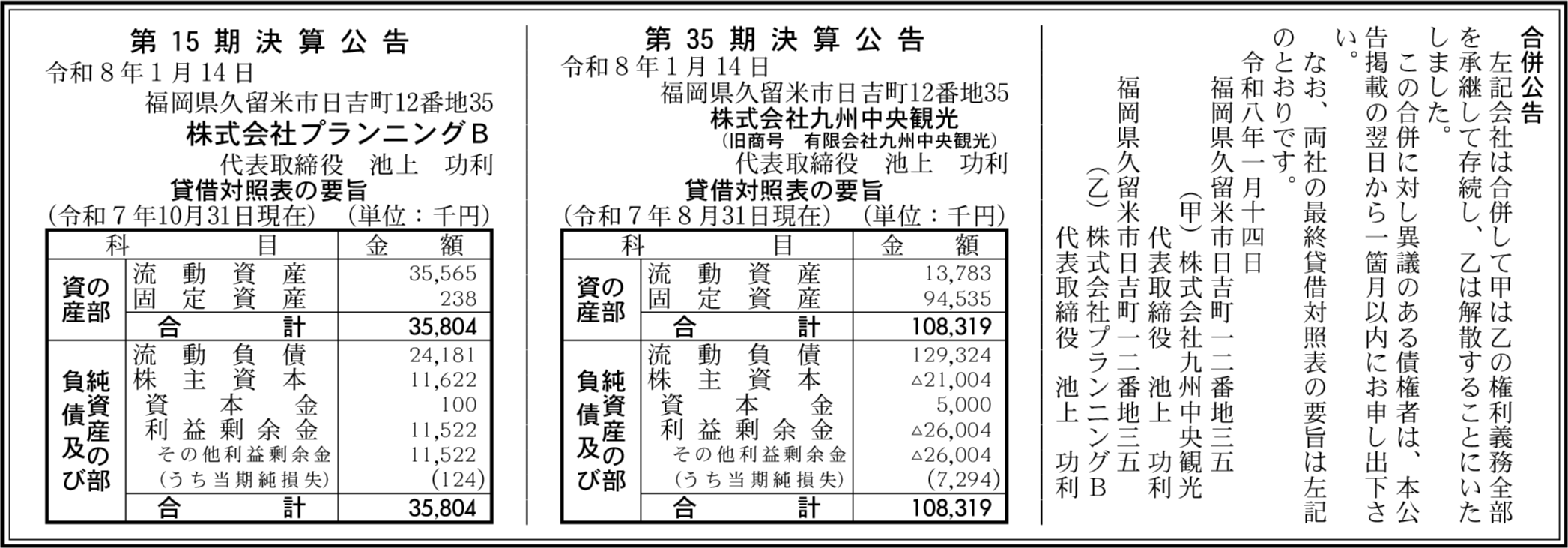 株式会社九州中央観光 福岡県久留米市 【2025年8月期】 |