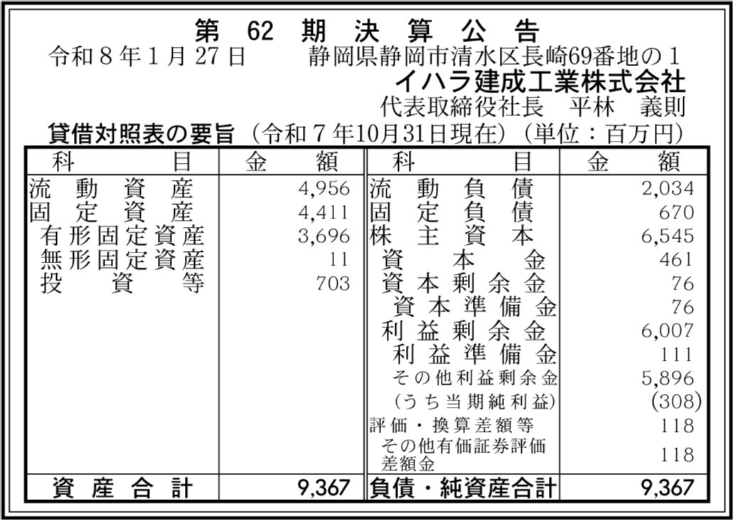 | 総資産 | 93億6,700万円 (▲1.12%) |