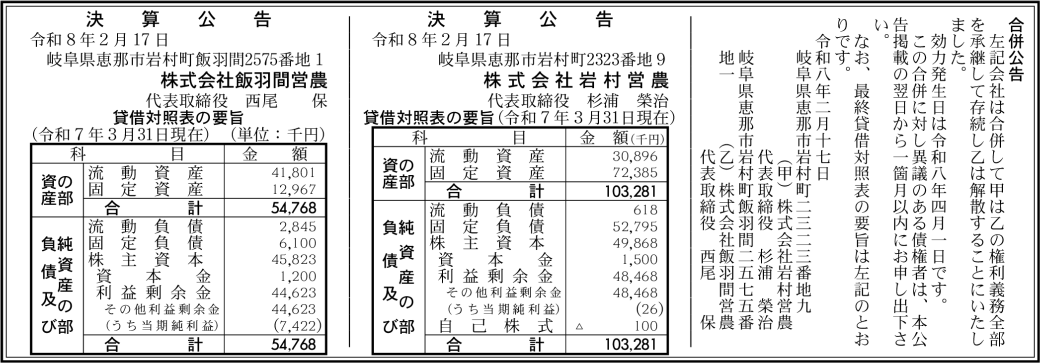 株式会社岩村営農 岐阜県恵那市 【2025年3月期】 |