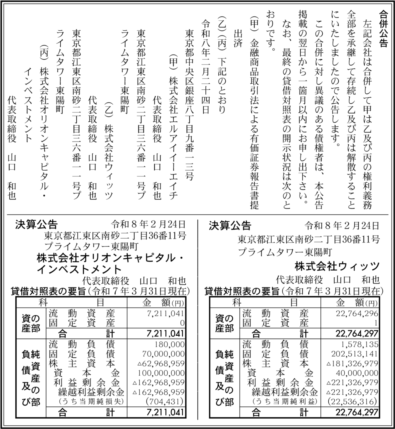 | 会社名 | 株式会社オリオンキャピタル・インベストメント |