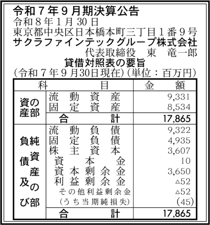 サクラグローバルホールディング株式会社 東京都中央区 【2025年9月期】 |
