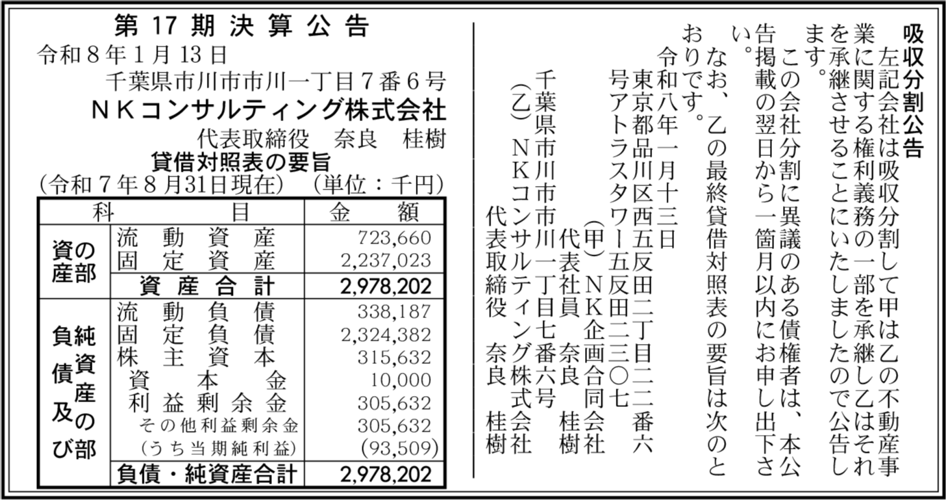 | 会社名 | NKコンサルティング株式会社 |