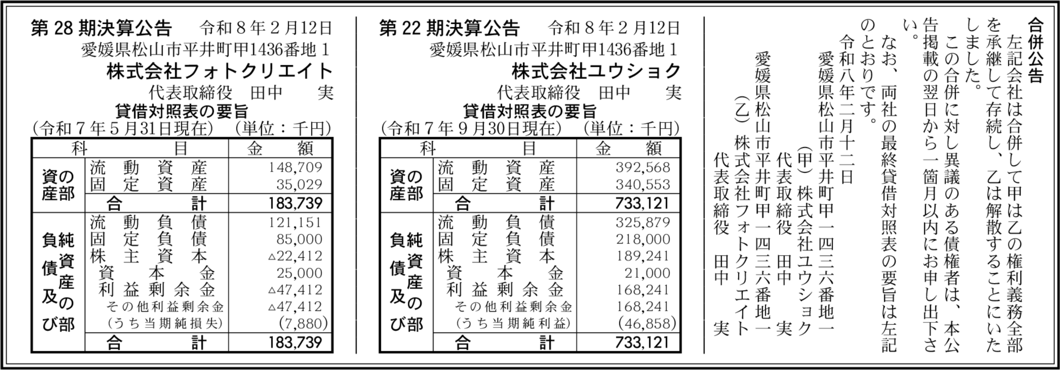 株式会社フォトクリエイト 愛媛県松山市 【2025年5月期】 |