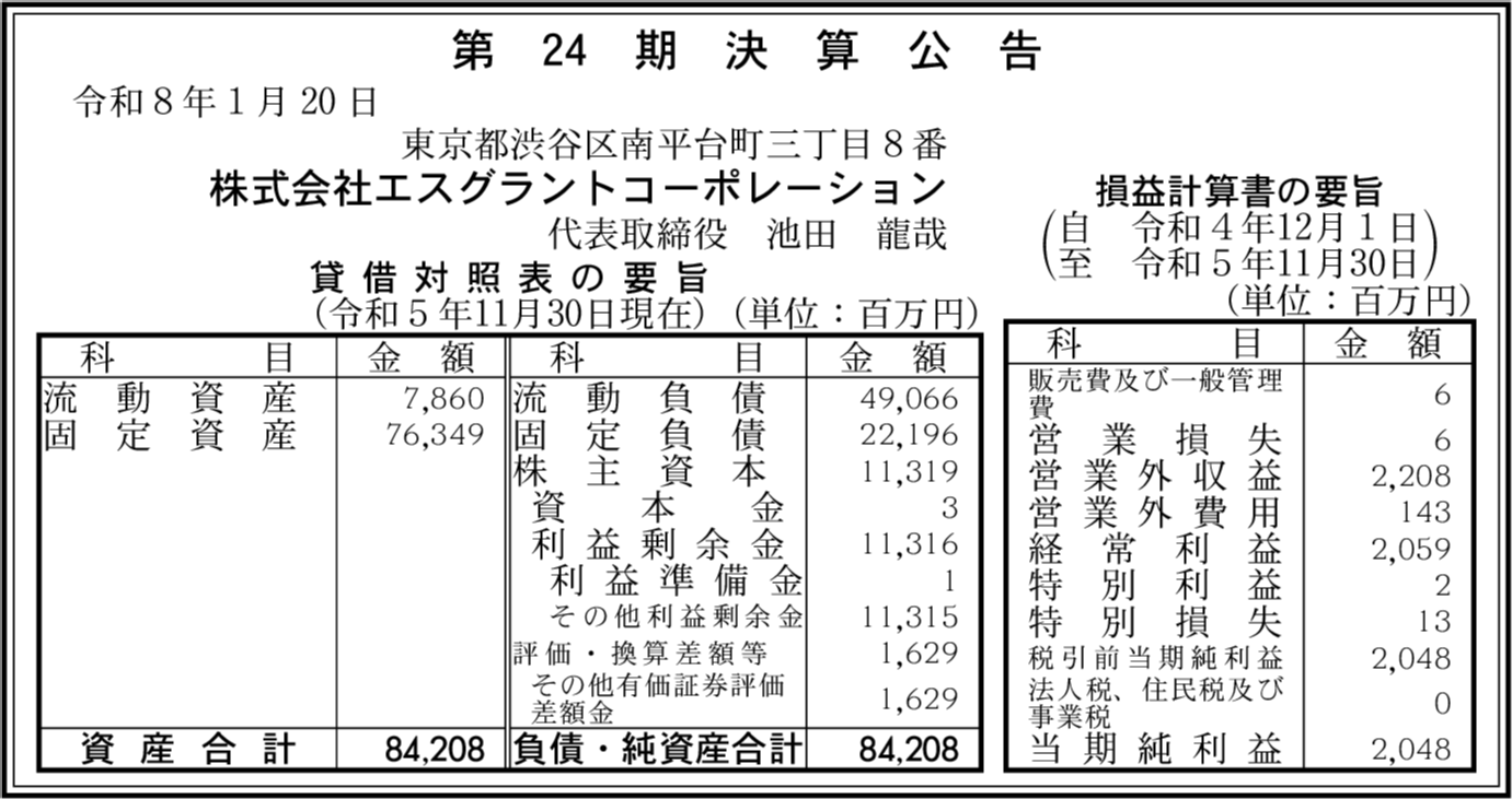 | 会社名 | 株式会社エスグラントコーポレーション |