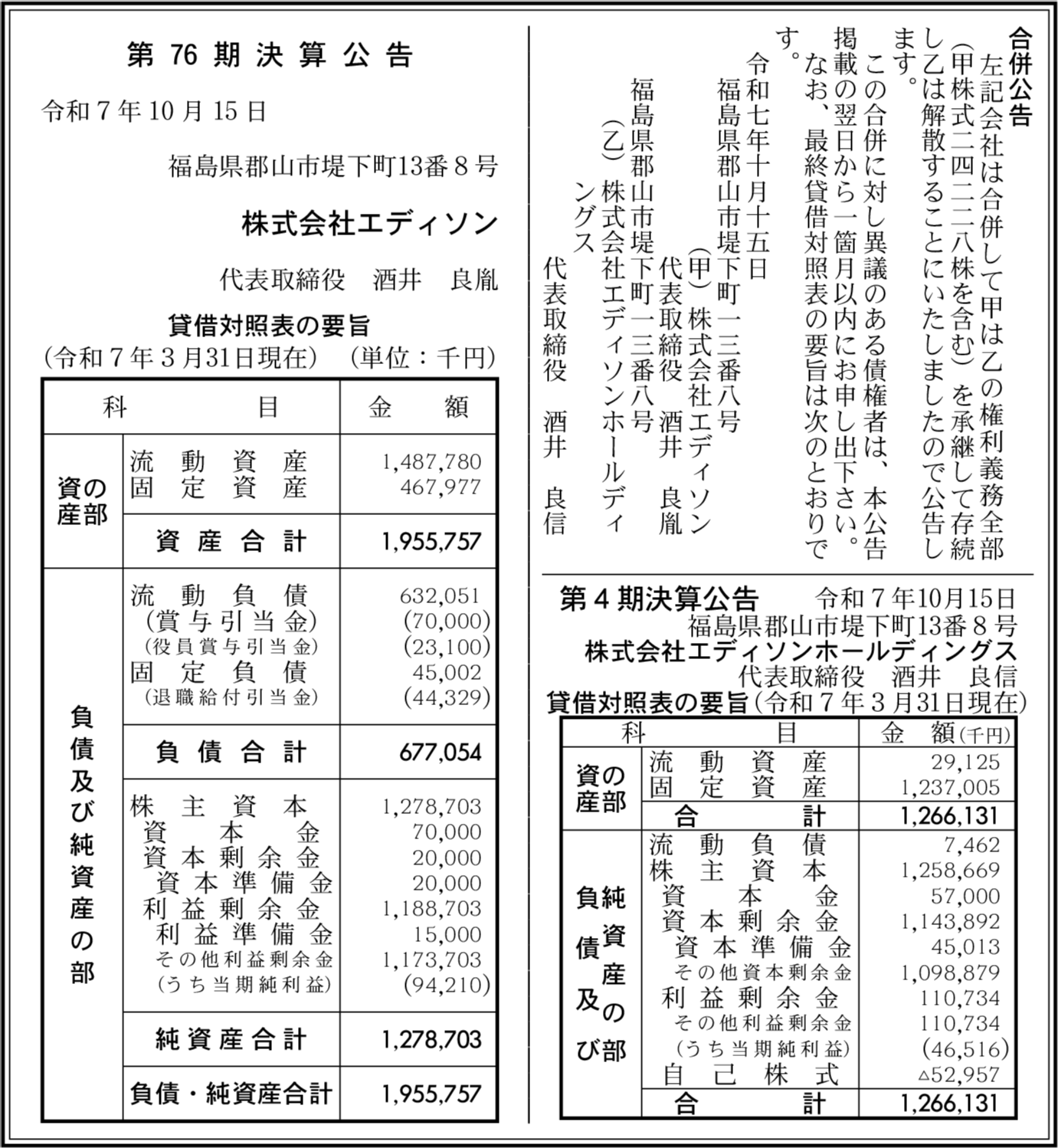 株式会社エディソン 福島県郡山市 【2025年3月期】 |