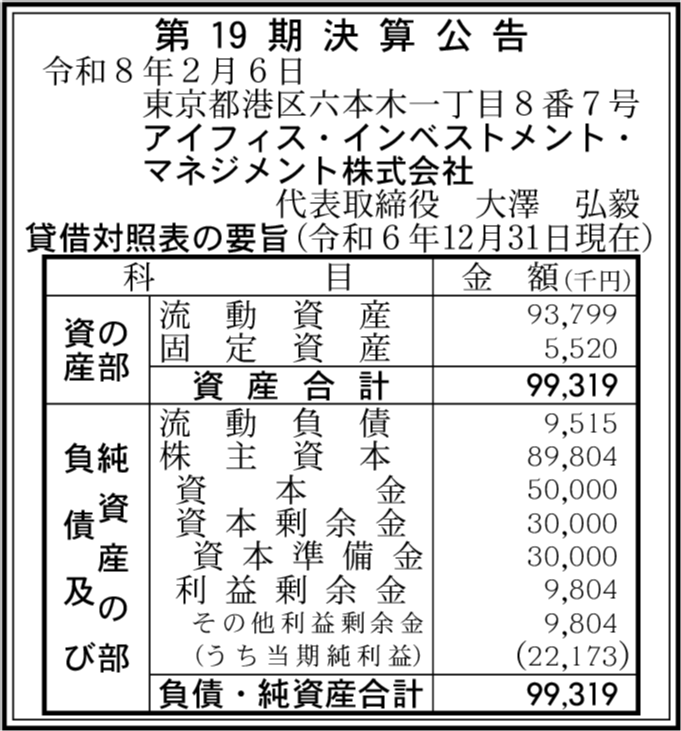 | 会社名 | アイフィス・インベストメント・マネジメント株式会社 |