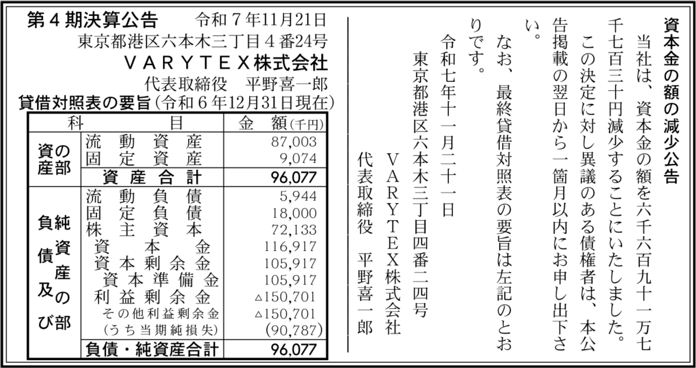 | 会社名 | VARYTEX株式会社 |