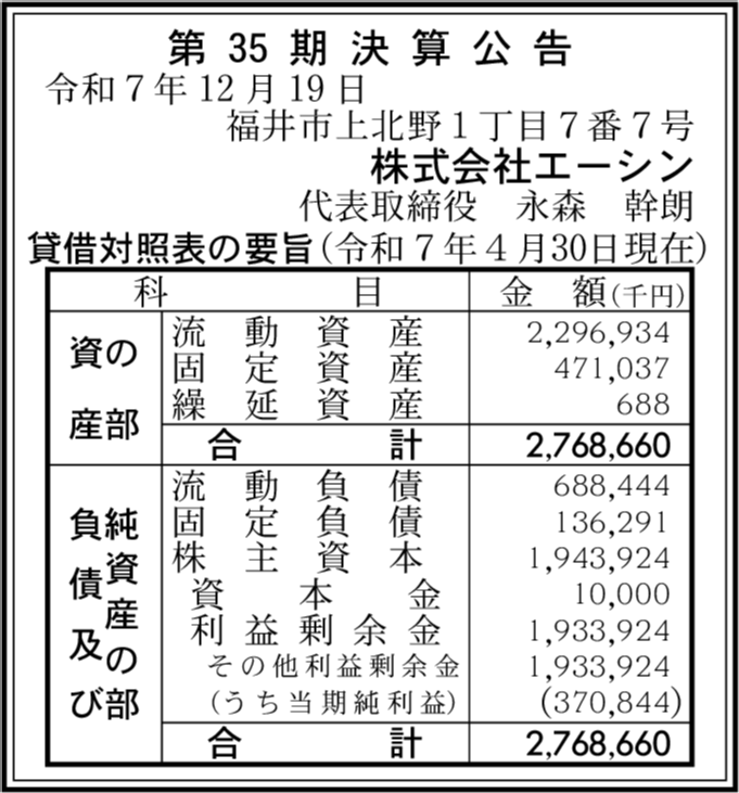 株式会社Life Bank 福井市 【2025年2月期】 |