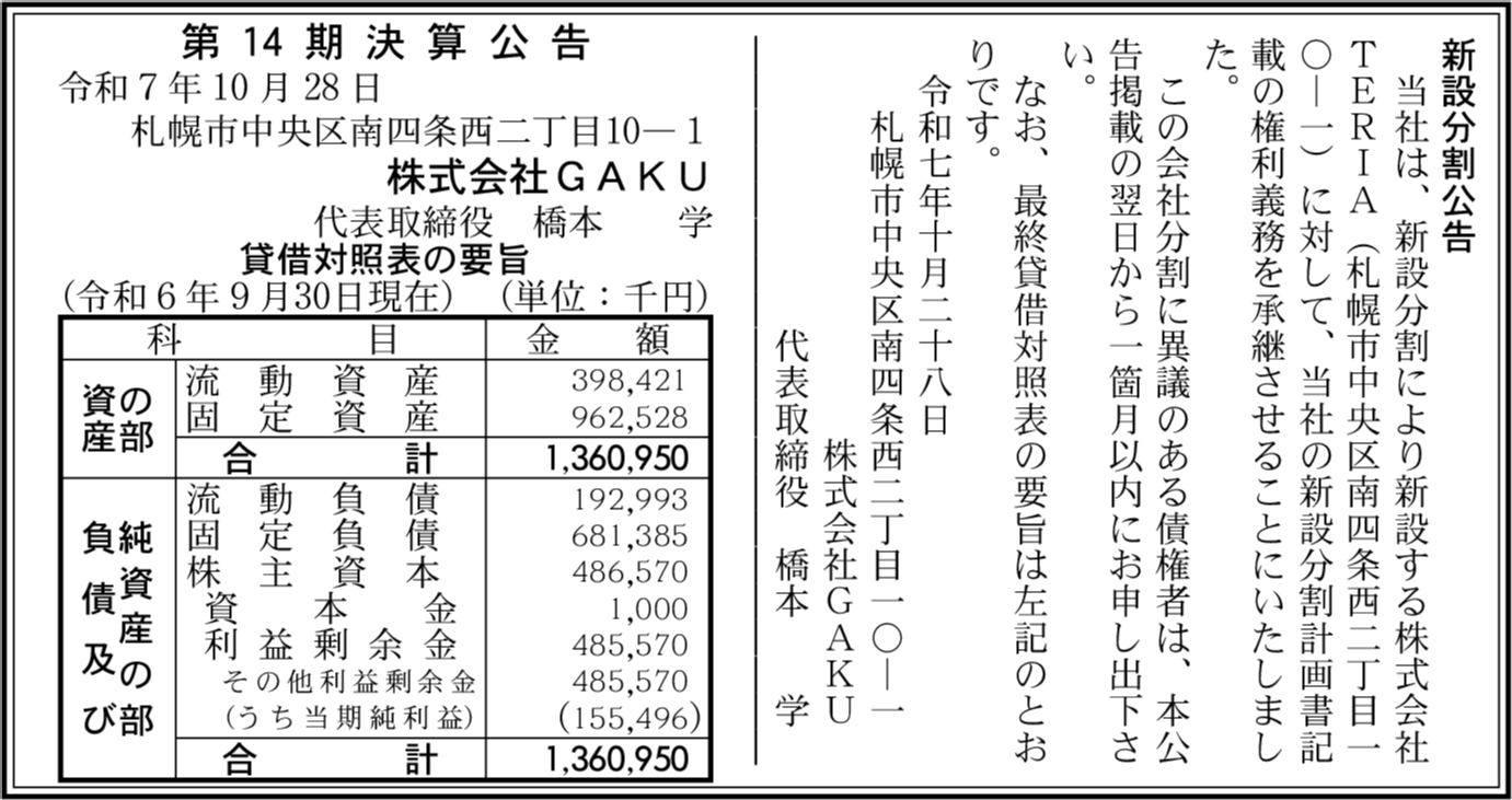 タケサト株式会社 札幌市中央区 【2025年7月期】 |