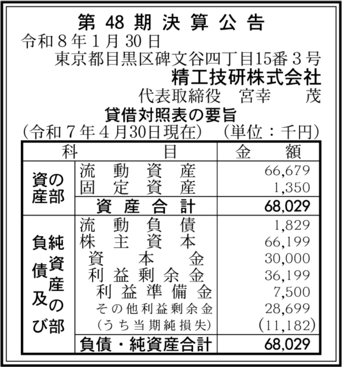 自動車精工株式会社 東京都目黒区 【2025年4月期】 |