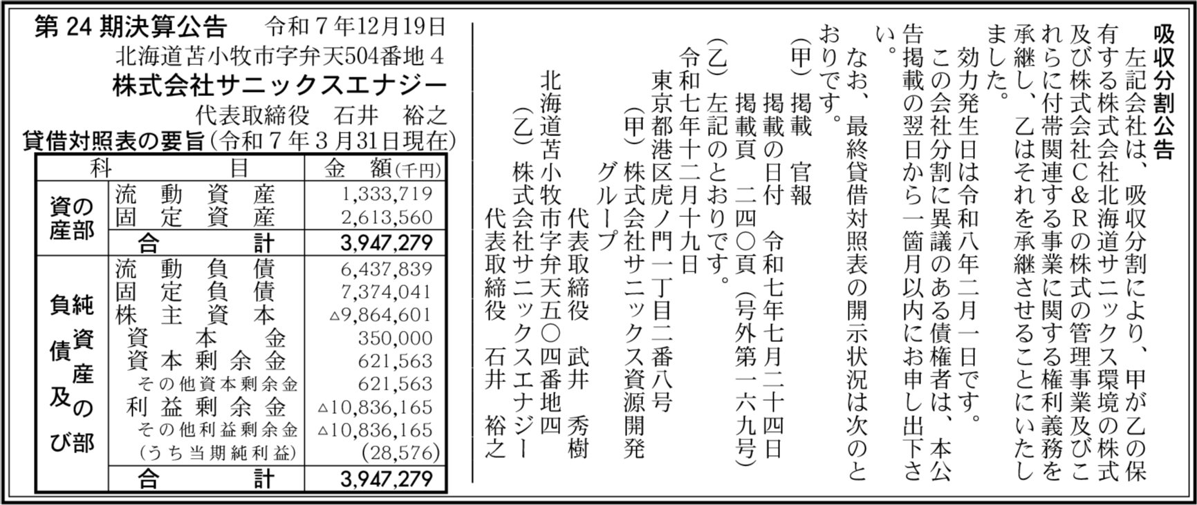 株式会社サニックスエナジー 北海道苫小牧市 |