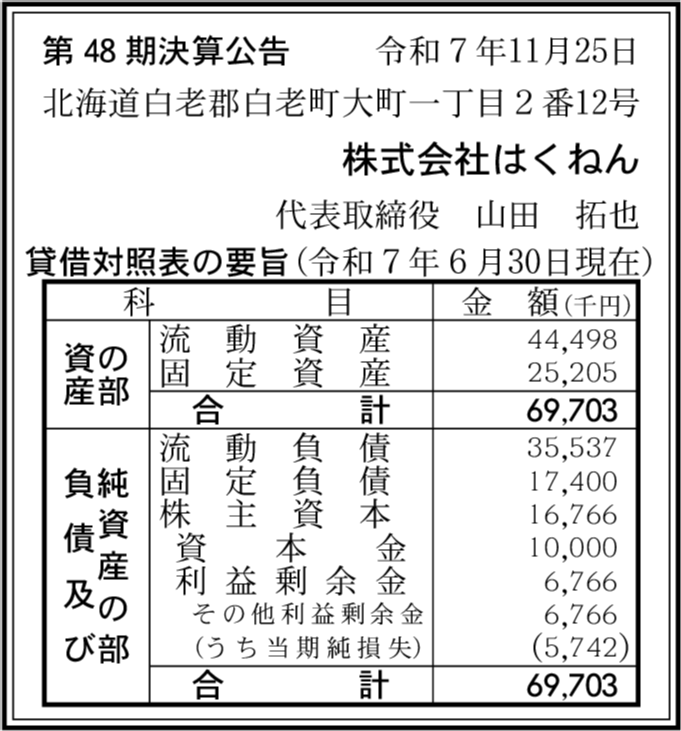 株式会社ダイエットクック白老 北海道白老郡白老町 【2025年3月期】 |