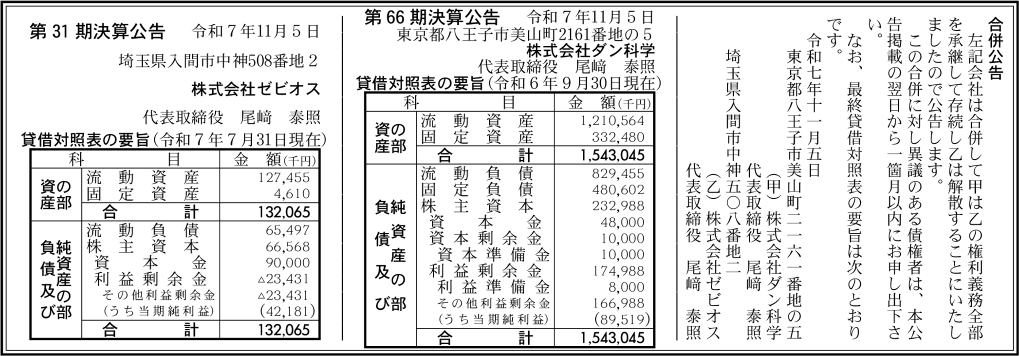 株式会社ゼビオス 埼玉県入間市 【2025年7月期】 |