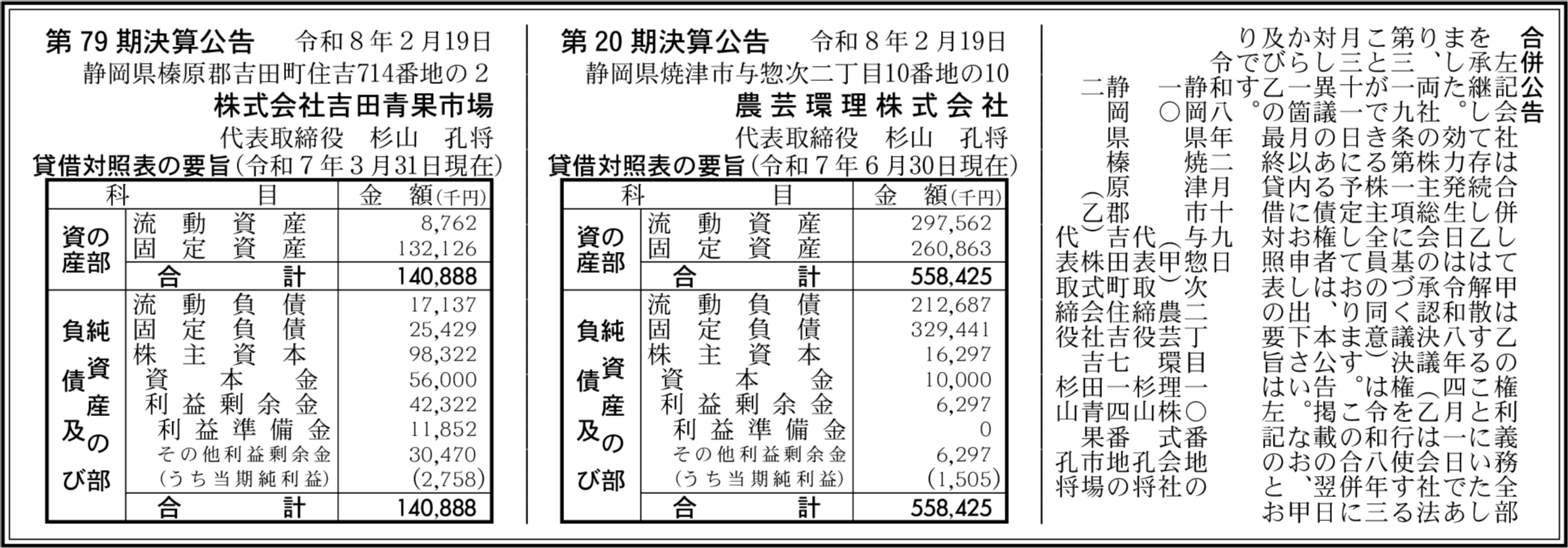 農芸環理株式会社 静岡県焼津市 【2025年6月期】 |