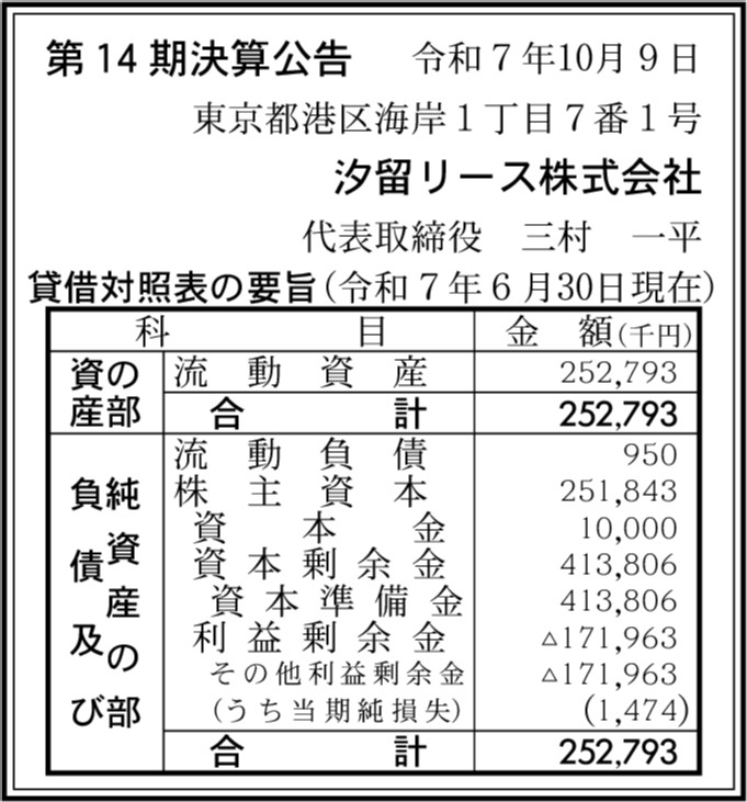 汐留ファイナンス株式会社 東京都港区 【2025年3月期】 |