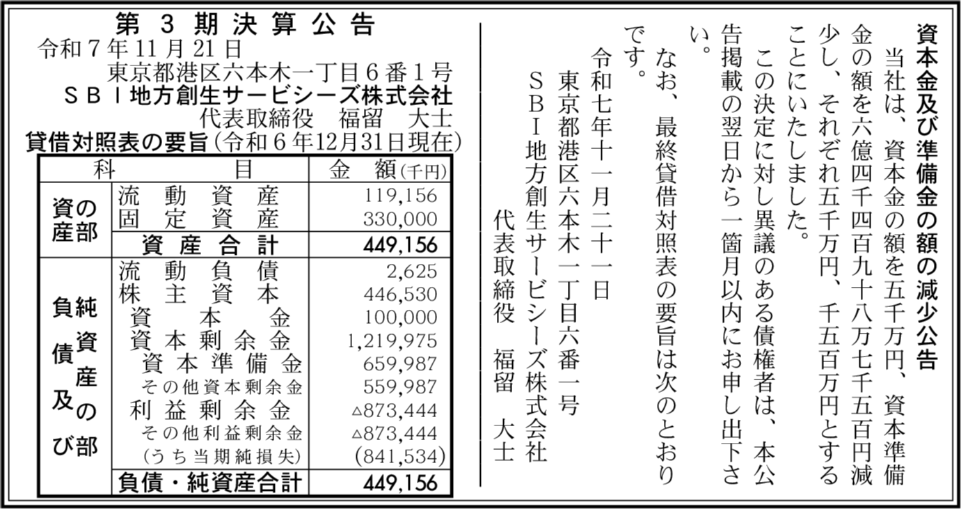 | 会社名 | SBI地方創生サービシーズ株式会社 |