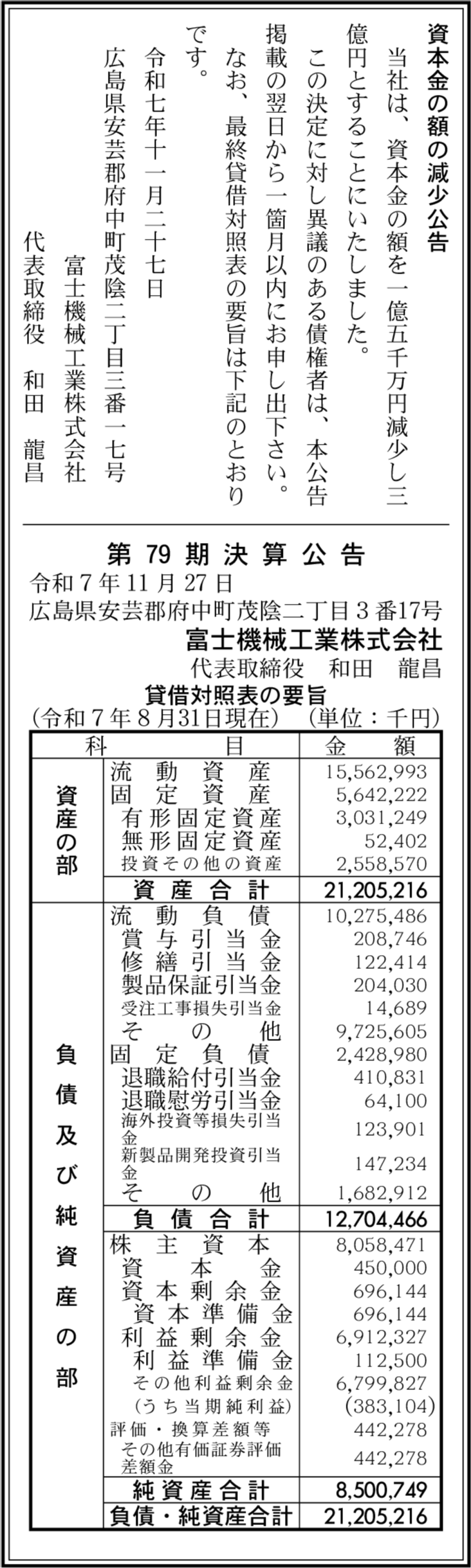 富士メカティクス株式会社 広島県安芸郡府中町 【2025年8月期】 |