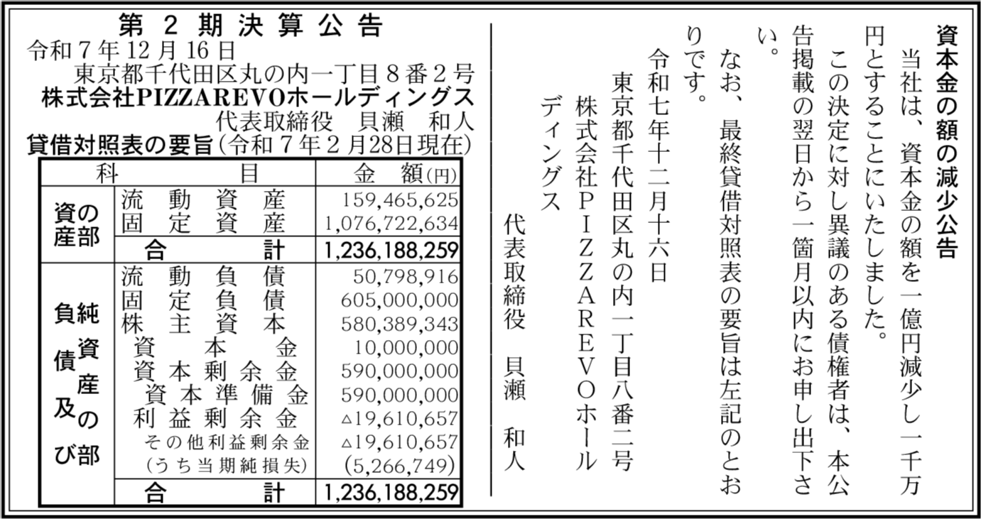| 会社名 | 株式会社PIZZAREVOホールディングス |
