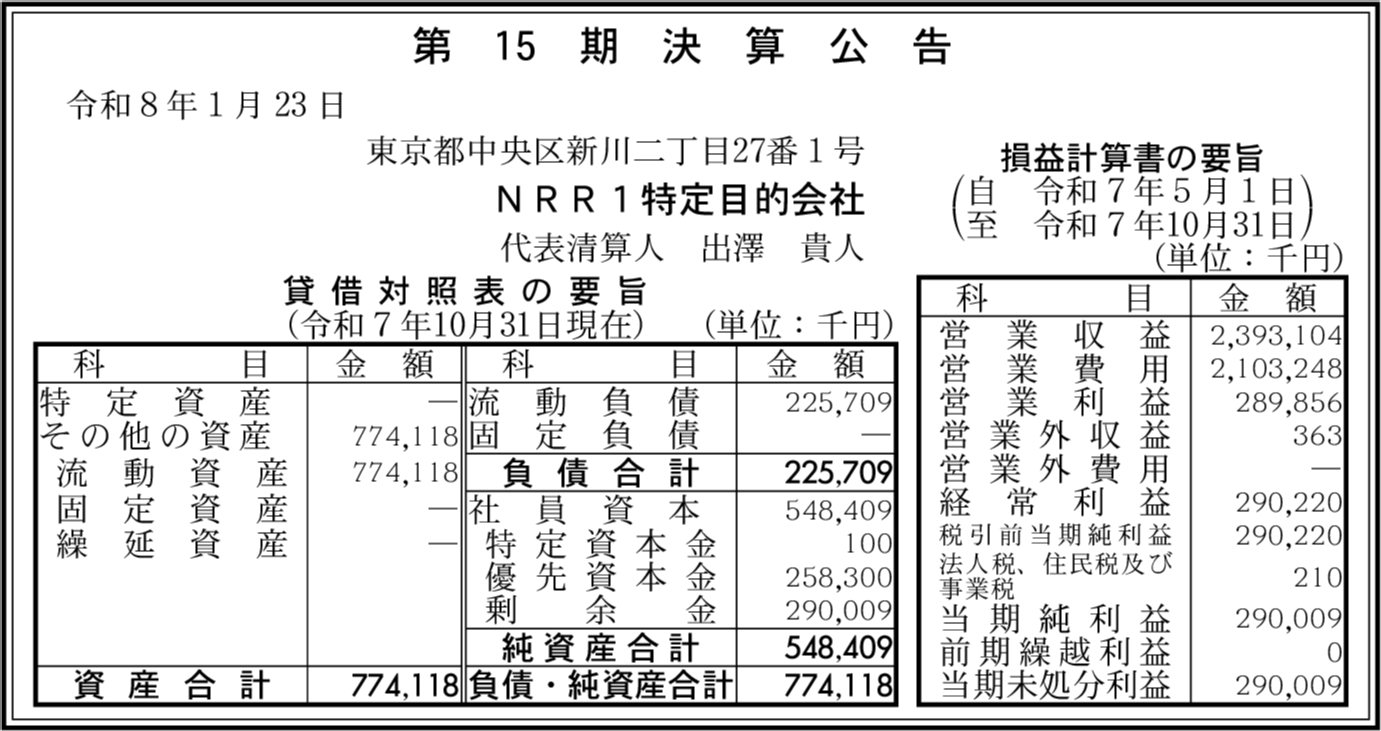 グリーンフォレスト特定目的会社 東京都中央区 【2025年6月期】 |