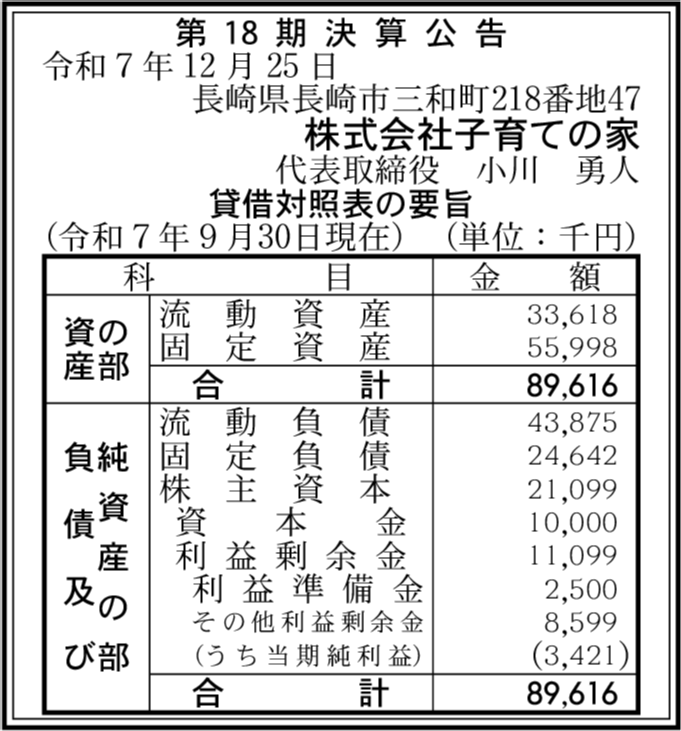株式会社コアインクルーズ 長崎市 【2025年9月期】 |