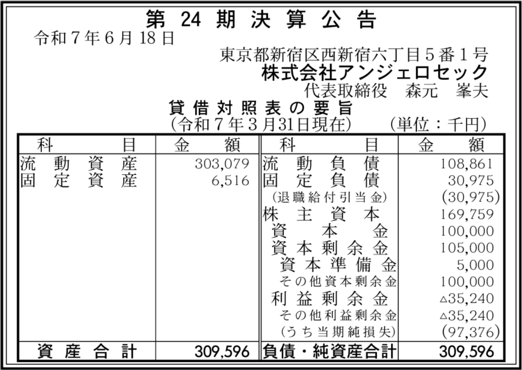 会社名 | 株式会社アンジェロセック |
