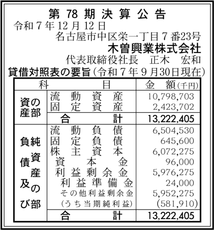 丹羽幸株式会社 名古屋市中区 【2025年3月期】 |
