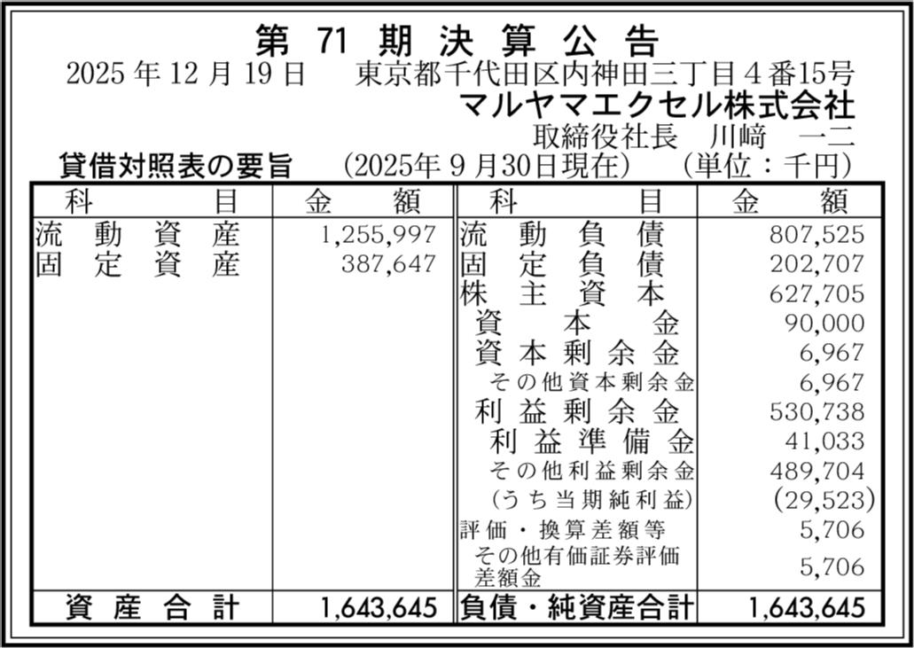 マルヤマエクセル株式会社 東京都千代田区 |