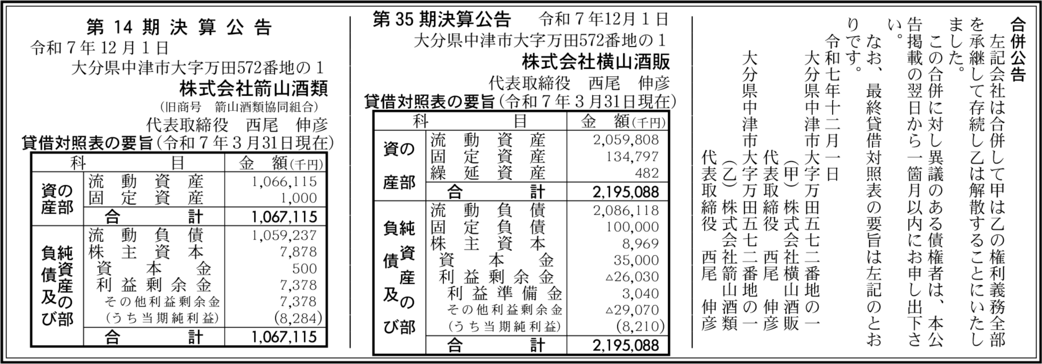 株式会社横山酒販 大分県中津市 【2025年3月期】 |