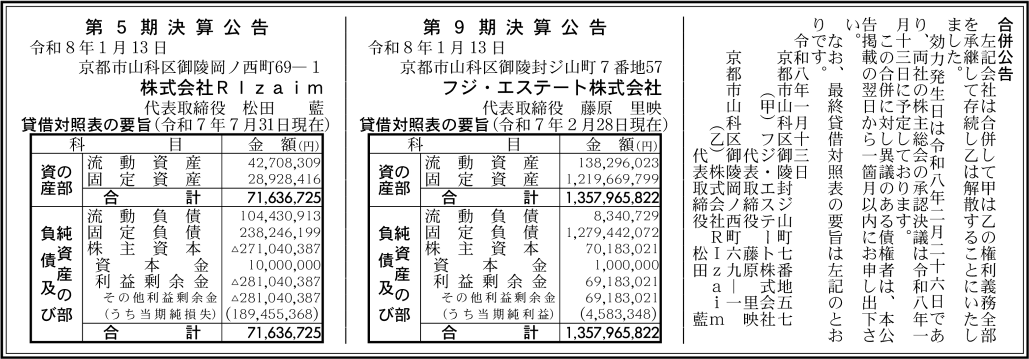 フジ・エステート株式会社 京都市山科区 【2025年2月期】 |
