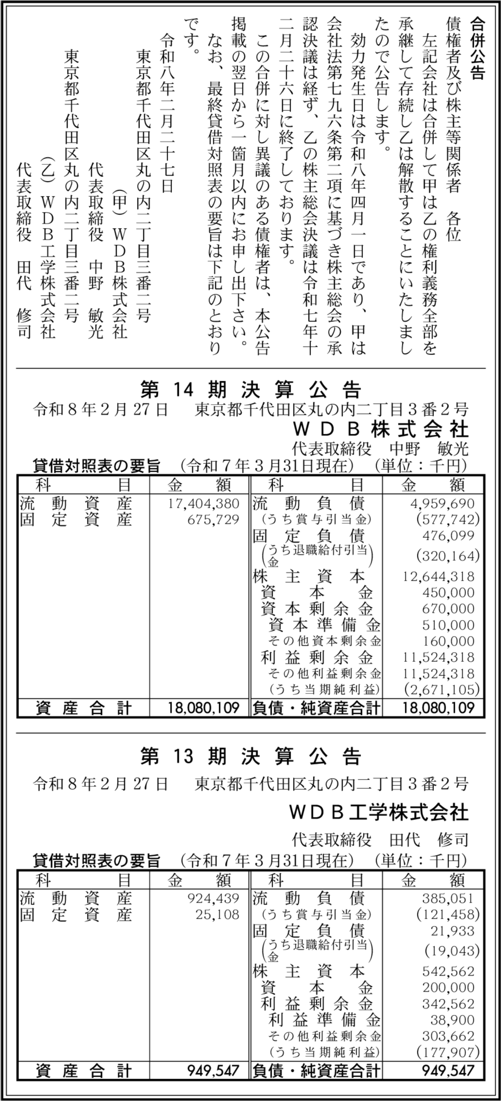 WDB工学株式会社 東京都千代田区 【2025年3月期】 |